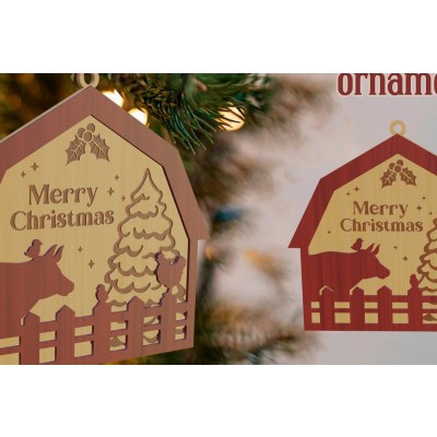 Όνομα Προϊόντος Σετ των 3 Intra απο ξύλο plywood 3mm-4mm πάχος Χριστουγεννιάτικο στολίδι αχυρώνα με λέιζερ Δίασταση 8x8 cm INTRAFABR-79692787