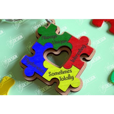 Σετ των 3 Intra απο ξύλο plywood 3mm-4mm πάχος Autism Awareness Keychain Δίασταση 6x6 cm INTRAFABR-114806278