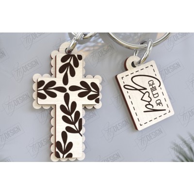 Κριτικάρετε το(τα): Σετ των 3 Intra απο ξύλο plywood 3mm-4mm πάχος Christian Keychain | Μπρελόκ Δίασταση 6x6 cm INTRAFABR-123417653