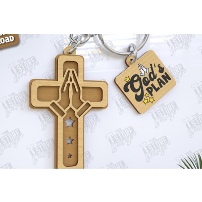 Όνομα Προϊόντος Σετ των 3 Intra απο ξύλο plywood 3mm-4mm πάχος Christian Keychain | Μπρελόκ Δίασταση 6x6 cm INTRAFABR-123418323