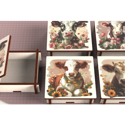 Σετ των 3 Intra απο ξύλο plywood 3mm-4mm πάχος - Cow Box + 4 PNG για Εξάχνωση Δίασταση 9x9 cm INTRAFABR-120328561