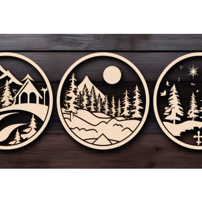 Σετ των 3 Intra απο ξύλο plywood 3mm-4mm πάχος - Cricut Χριστουγεννιάτικη Σκηνή Στολίδι Bund Δίασταση 4x4 cm INTRAFABR-82750037