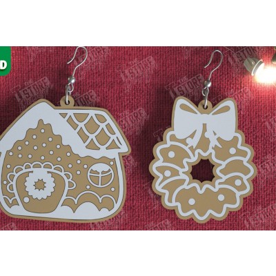 Σετ των 3 Intra απο ξύλο plywood 3mm-4mm πάχος - Gingerbread House Earrings |Κόσμημα| CNC Δίασταση 3x3 cm INTRAFABR-106454119