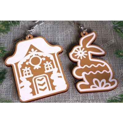 Κριτικάρετε το(τα): Σετ των 3 Intra απο ξύλο plywood 3mm-4mm πάχος - Gingerbread House Earrings | Κοσμήματα|CNC Δίασταση 3x3 cm INTRAFABR-107025032