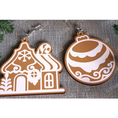 Κριτικάρετε το(τα): Σετ των 3 Intra απο ξύλο plywood 3mm-4mm πάχος - Gingerbread House Earrings | Κοσμήματα|CNC Δίασταση 3x3 cm INTRAFABR-107025075