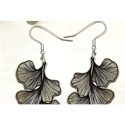 Σετ των 3 Intra απο ξύλο plywood 3mm-4mm πάχος - Σκουλαρίκια Ginko Leaf Cut Laser. Δίασταση 3x3 cm INTRAFABR-121136846