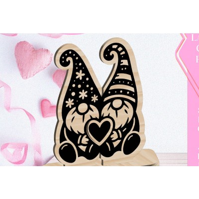 Σετ των 3 Intra απο ξύλο plywood 3mm-4mm πάχος - Κόψιμο με λέιζερ στολίδι Gnome Love Valentine Δίασταση 6x6 cm INTRAFABR-113427461