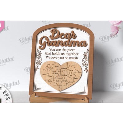 Grandmother Puzzle Πλαίσιο Κοπή με λέιζερ Πρόκειται για ψηφιακό σχεδίου, ιδανικό για κοπή με ή plotter. Κατασκευασμένο απο Ξύλο από plywood [3mm ή 4mm], κομμένο με ακρίβεια στην βιοτεχνία Intrahome . Το φυσικό ξύλο προσφέρει μια κομψή, αυθεντική υφή και μπορεί εύκολα να βαφτεί ή να διακοσμηθεί σύμφωνα με το προσωπικό σας γούστο. Ελληνική παραγωγή – Κατασκευάζεται στην Ελλάδα με προσοχή στη λεπτομέρεια και υψηλές προδιαγραφές ποιότητας. ✔️ Υλικό: Plywood υψηλής ποιότητας ✔️ Διατίθεται σε πάχος 3mm ή 4mm ✔️ Ελαφρύ, ανθεκτικό και εύκολο στη χρήση ✔️ Ιδανικό για βάψιμο, χάραξη, κόλληση και χειροτεχνίες ✔️ Κατάλληλο για μπομπονιέρες, διακόσμηση, δώρα και DIY projects ✅ Εγγύηση 2 ετών – Σε περίπτωση σπασίματος, η αντικατάσταση γίνεται άμεσα, χάρη στην τοπική ελληνική παραγωγή μας. Ιδανικό για δημιουργικούς ανθρώπους που αγαπούν το DIY. Μπορεί να γίνει ξεχωριστό δώρο με προσωπικό χαρακτήρα. Φέρνει “χειροποίητη” αισθητική στη διακόσμηση. -files- Ελληνική χειροποίητη παραγωγή → στ