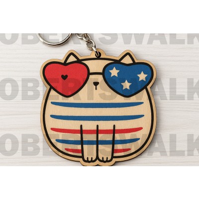 Σετ των 3 Intra απο ξύλο plywood 3mm-4mm πάχος – Αρχείο Keychain Patriotic Cat Δίασταση 5x5 cm INTRAFABR-122602153
