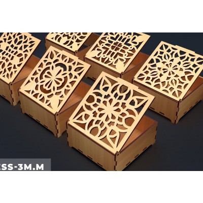 Σετ των 3 Intra απο ξύλο plywood 3mm-4mm πάχος - Διακοσμητικό Ξύλινο Κουτί Δώρου Κοπή Laser Δίασταση 6x6 cm INTRAFABR-84206712