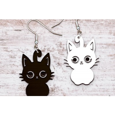 Σετ των 3 Intra απο ξύλο plywood 3mm-4mm πάχος - Σκουλαρίκια Laser cut. Λέιζερ σιλουέτας γάτας Δίασταση 3x3 cm INTRAFABR-119855435