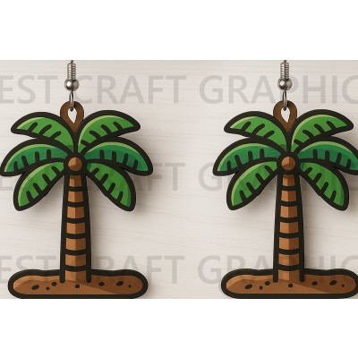Όνομα Προϊόντος Σετ των 3 Intra απο ξύλο plywood 3mm-4mm πάχος – Σκουλαρίκια Palm Tree Tropical Δίασταση 5x5 cm INTRAFABR-123010336