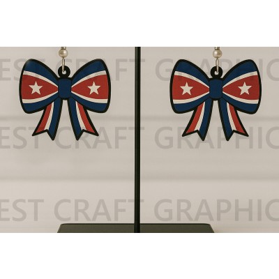 Σετ των 3 Intra απο ξύλο plywood 3mm-4mm πάχος – Patriotic Bow Earrings USA Δίασταση 5x5 cm INTRAFABR-122737875