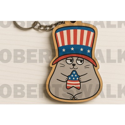 Σετ των 3 Intra απο ξύλο plywood 3mm-4mm πάχος – Μπρελόκ Patriotic Cat Δίασταση 5x5 cm INTRAFABR-122600789