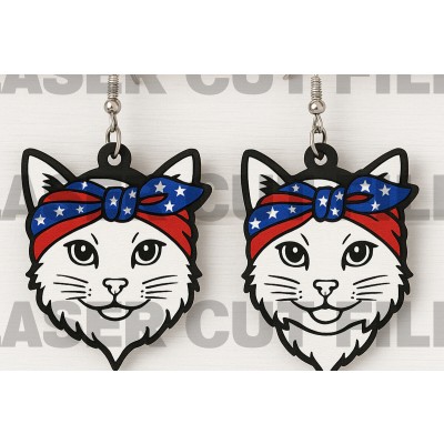 Σετ των 3 Intra απο ξύλο plywood 3mm-4mm πάχος – Patriotic Cat Earrings Δίασταση 5x5 cm INTRAFABR-122673532