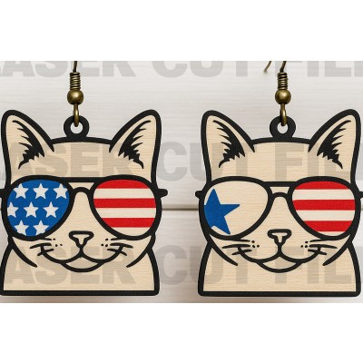 Όνομα Προϊόντος Σετ των 3 Intra απο ξύλο plywood 3mm-4mm πάχος – Patriotic Cat Glasses Earrings Δίασταση 5x5 cm INTRAFABR-122673567