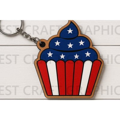 Όνομα Προϊόντος Σετ των 3 Intra απο ξύλο plywood 3mm-4mm πάχος – Μπρελόκ Patriotic Cupcake Δίασταση 5x5 cm INTRAFABR-122937426