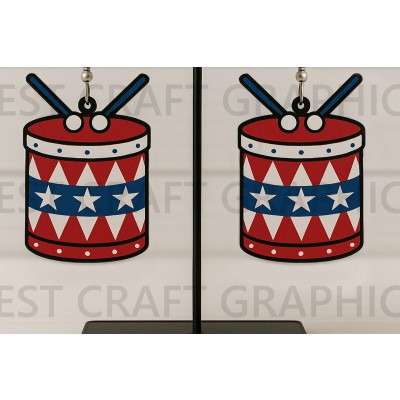Σετ των 3 Intra απο ξύλο plywood 3mm-4mm πάχος – Patriotic Drum Earrings Δίασταση 5x5 cm INTRAFABR-122737838