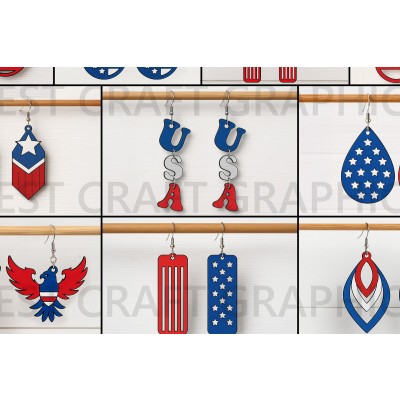 Σετ των 3 Intra απο ξύλο plywood 3mm-4mm πάχος – Patriotic Earrings Bundle USA Δίασταση 5x5 cm INTRAFABR-122656716