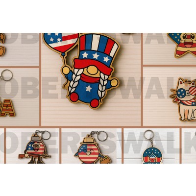 Σετ των 3 Intra απο ξύλο plywood 3mm-4mm πάχος – Μπρελόκ Patriotic Girl Gnome Δίασταση 5x5 cm INTRAFABR-122601320