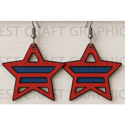 Σετ των 3 Intra απο ξύλο plywood 3mm-4mm πάχος – Patriotic Star Earrings Δίασταση 5x5 cm INTRAFABR-122654828