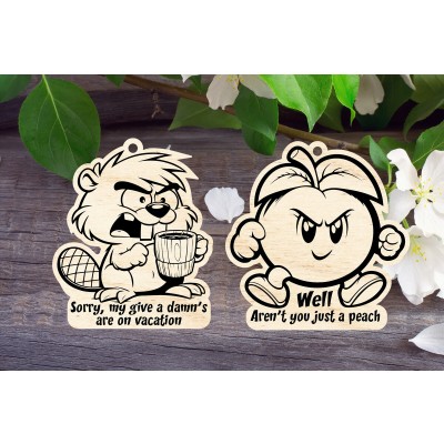 Σετ των 3 Intra απο ξύλο plywood 3mm-4mm πάχος – Αστεία μπρελόκ Peach and Beaver Δίασταση 5x5 cm INTRAFABR-114151248