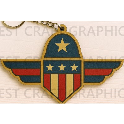 Σετ των 3 Intra απο ξύλο plywood 3mm-4mm πάχος – Μπρελόκ με φτερωτό σήμα USA Δίασταση 5x5 cm INTRAFABR-122668199