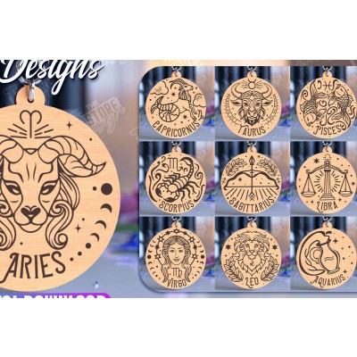 Σετ των 3 Intra απο ξύλο plywood 3mm-4mm πάχος – Πακέτο σχεδίασης κοπής λέιζερ μπρελόκ Zodiac Δίασταση 5x5 cm INTRAFABR-98273439
