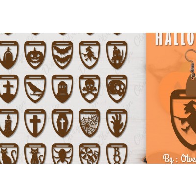 Σετ των 3 Intra απο ξύλο plywood Χρώμα wenge 3mm-4mm πάχος - Αποκριάτικα σκουλαρίκια με λέιζερ Δίασταση 3x3 cm INTRAFABR-112877513