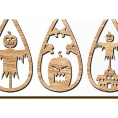 Σετ των 3 Intra απο ξύλο plywood Χρώμα wenge 3mm-4mm πάχος - Αποκριάτικα σκουλαρίκια με λέιζερ Δίασταση 3x3 cm INTRAFABR-120426673