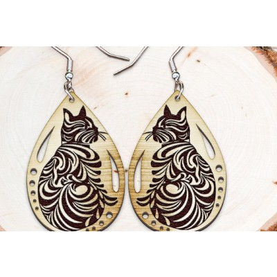 Σετ των 3 Intra απο ξύλο plywood Χρώμα wenge 3mm-4mm πάχος - Σκουλαρίκια . Λέιζερ σιλουέτας γάτας Δίασταση 3x3 cm INTRAFABR-28892199
