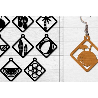 Σετ των 3 Intra απο ξύλο plywood Χρώμα wenge 3mm-4mm πάχος - Σκουλαρίκι Summer Lasercut BUNDLE 8 DESIGNS Δίασταση 3x3 cm INTRAFABR-118738306