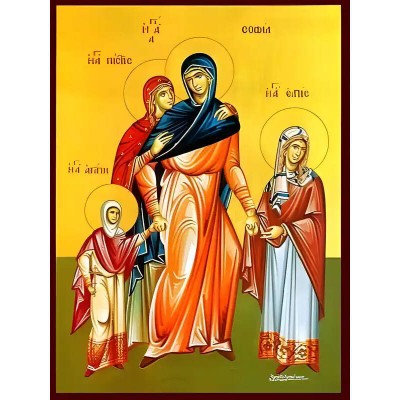 Κριτικάρετε το(τα): Εικόνα Ορθοδοξίας με περίγραμμα χρυσό σε ξύλο Φλαμουρίας με βάση Εικόνα ΑΓΙΕΣ ΣΟΦΙΑ ΚΑΙ ΘΥΓΑΤΕΡΕΣ, ΠΙΣΤΙΣ, ΕΛΠΙΣ ΚΑΙ ΑΓΑΠΗ, ΟΛΟΣΩΜΕΣ Χειροποίητη Ελληνορθόδοξη εικόνα του Ιησού Χριστού, Κρεμαστή πλάκα βυζαντινής τέχνης, χριστιανική τέχνη Διάσταση 40x30 c