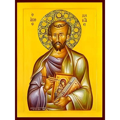 Κριτικάρετε το(τα): Εικόνα Ορθοδοξίας με περίγραμμα χρυσό σε ξύλο Φλαμουρίας με βάση Εικόνα ΑΓΙΟΣ ΑΠΟΣΤΟΛΟΣ ΚΑΙ ΕΥΑΓΓΕΛΙΣΤΗΣ ΛΟΥΚΑΣ ΜΕ ΑΓΙΟΓΡΑΦΙΑ Χειροποίητη Ελληνορθόδοξη εικόνα του Ιησού Χριστού, Κρεμαστή πλάκα βυζαντινής τέχνης, χριστιανική τέχνη Διάσταση 40x30 cm (10,2