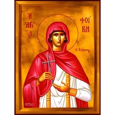 | Όνομα Προϊόντος | Εικόνα Ορθοδοξίας με περίγραμμα χρυσό σε ξύλο Φλαμουρίας με βάση Εικόνα ΑΓΙΑ ΦΟΙΒΗ Η ΔΙΑΚΟΝΟΣ, ΕΙΣ ΚΕΧΡΙΕΣ ΚΟΡΙΝΘΟΥ Χειροποίητη Ελληνορθόδοξη εικόνα του Ιησού Χριστού, Κρεμαστή πλάκα βυζαντινής τέχνης, χριστιανική τέχνη Διάσταση 40x30 cm (10,2x7,9 ίντσε |