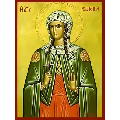 Όνομα Προϊόντος Εικόνα Ορθοδοξίας με περίγραμμα χρυσό σε ξύλο Φλαμουρίας με βάση Εικόνα ΑΓΙΑ ΦΩΤΕΙΝΗ Η ΣΑΜΑΡΕΙΤΙΣ, Η ΜΕΓΑΛΟΜΑΡΤΥΣ Χειροποίητη Ελληνορθόδοξη εικόνα του Ιησού Χριστού, Κρεμαστή πλάκα βυζαντινής τέχνης, χριστιανική τέχνη Διάσταση 40x30 cm (10,2x7,9 ίντσες)