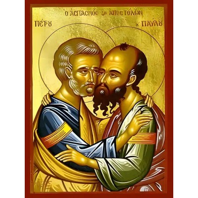 Κριτικάρετε το(τα): Εικόνα Ορθοδοξίας με περίγραμμα χρυσό σε ξύλο Φλαμουρίας με βάση Εικόνα ΑΓΙΟΙ ΑΠΟΣΤΟΛΟΙ ΠΕΤΡΟΣ ΚΑΙ ΠΑΥΛΟΣ, Ο ΑΣΠΑΣΜΟΣ Χειροποίητη Ελληνορθόδοξη εικόνα του Ιησού Χριστού, Κρεμαστή πλάκα βυζαντινής τέχνης, χριστιανική τέχνη Διάσταση 40x30 cm (10,2x7,9 ίντ