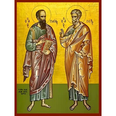 Κριτικάρετε το(τα): Εικόνα Ορθοδοξίας με περίγραμμα χρυσό σε ξύλο Φλαμουρίας με βάση Εικόνα ΑΓΙΟΙ ΑΠΟΣΤΟΛΟΙ ΠΕΤΡΟΣ ΚΑΙ ΠΑΥΛΟΣ, ΟΛΟΣΩΜΟΙ Χειροποίητη Ελληνορθόδοξη εικόνα του Ιησού Χριστού, Κρεμαστή πλάκα βυζαντινής τέχνης, χριστιανική τέχνη Διάσταση 40x30 cm (10,2x7,9 ίντσε