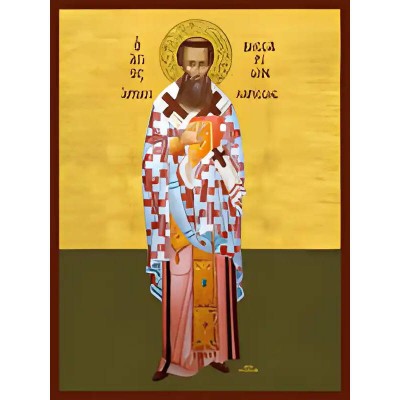 Κριτικάρετε το(τα): Εικόνα Ορθοδοξίας με περίγραμμα χρυσό σε ξύλο Φλαμουρίας με βάση Εικόνα ΑΓΙΟΣ ΒΗΣΣΑΡΙΩΝ, ΑΡΧΙΕΠΙΣΚΟΠΟΣ ΛΑΡΙΣΗΣ, ΟΛΟΣΩΜΟΣ Χειροποίητη Ελληνορθόδοξη εικόνα του Ιησού Χριστού, Κρεμαστή πλάκα βυζαντινής τέχνης, χριστιανική τέχνη Διάσταση 40x30 cm (10,2x7,9