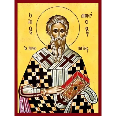 Όνομα Προϊόντος Εικόνα Ορθοδοξίας με περίγραμμα χρυσό σε ξύλο Φλαμουρίας με βάση Εικόνα ΑΓΙΟΣ ΔΙΟΝΥΣΙΟΣ ΙΕΡΟΜΑΡΤΥΣ, Ο ΑΡΕΟΠΑΓΙΤΗΣ Χειροποίητη Ελληνορθόδοξη εικόνα του Ιησού Χριστού, Κρεμαστή πλάκα βυζαντινής τέχνης, χριστιανική τέχνη Διάσταση 40x30 cm (10,2x7,9 ίντσες)