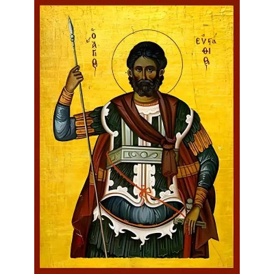 Όνομα Προϊόντος Εικόνα Ορθοδοξίας με περίγραμμα χρυσό σε ξύλο Φλαμουρίας με βάση Εικόνα ΑΓΙΟΣ ΕΥΣΤΑΘΙΟΣ ΠΛΑΚΙΔΑΣ, Ο ΜΕΓΑΛΟΜΑΡΤΥΣ Χειροποίητη Ελληνορθόδοξη εικόνα του Ιησού Χριστού, Κρεμαστή πλάκα βυζαντινής τέχνης, χριστιανική τέχνη Διάσταση 40x30 cm (10,2x7,9 ίντσες)