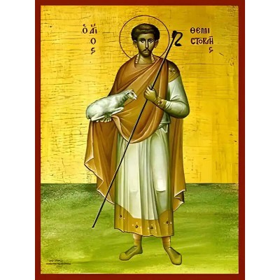 Όνομα Προϊόντος Εικόνα Ορθοδοξίας με περίγραμμα χρυσό σε ξύλο Φλαμουρίας με βάση Εικόνα ΑΓΙΟΣ ΘΕΜΙΣΤΟΚΛΗΣ, ΜΑΡΤΥΣ, ΜΥΡΩΝ ΛΥΚΙΑΣ, ΟΛΟΣΩΜΟΣ Χειροποίητη Ελληνορθόδοξη εικόνα του Ιησού Χριστού, Κρεμαστή πλάκα βυζαντινής τέχνης, χριστιανική τέχνη Διάσταση 40x30 cm (10,2x7,9