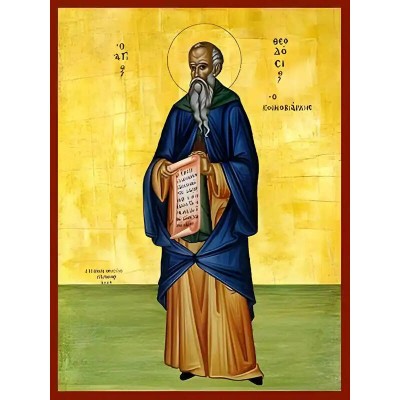 Εικόνα Ορθοδοξίας με περίγραμμα χρυσό σε ξύλο Φλαμουρίας με βάση Εικόνα ΑΓΙΟΣ ΘΕΟΔΟΣΙΟΣ, Ο ΚΟΙΝΟΒΙΑΡΧΗΣ, ΟΛΟΣΩΜΟΣ Χειροποίητη Ελληνορθόδοξη εικόνα του Ιησού Χριστού, Κρεμαστή πλάκα βυζαντινής τέχνης, χριστιανική τέχνη Διάσταση 40x30 cm (10,2x7,9 ίντσες)