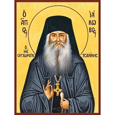 Όνομα Προϊόντος Εικόνα Ορθοδοξίας με περίγραμμα χρυσό σε ξύλο Φλαμουρίας με βάση Εικόνα ΑΓΙΟΣ ΙΑΚΩΒΟΣ ΤΣΑΛΙΚΗΣ, Ο ΜΕ ΣΥΓΧΩΡΕΙΤΕ Χειροποίητη Ελληνορθόδοξη εικόνα του Ιησού Χριστού, Κρεμαστή πλάκα βυζαντινής τέχνης, χριστιανική τέχνη Διάσταση 40x30 cm (10,2x7,9 ίντσες)