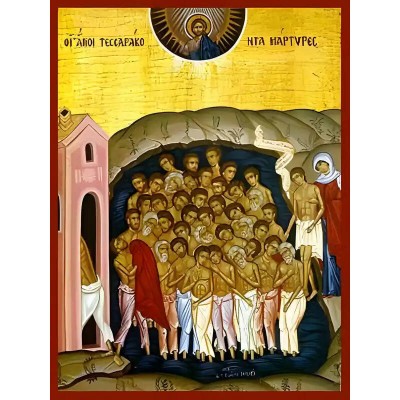 Κριτικάρετε το(τα): Εικόνα Ορθοδοξίας με περίγραμμα χρυσό σε ξύλο Φλαμουρίας με βάση Εικόνα ΑΓΙΟΙ ΤΕΣΣΑΡΑΚΟΝΤΑ ΜΑΡΤΥΡΕΣ ΣΕΒΑΣΤΕΙΑΣ Χειροποίητη Ελληνορθόδοξη εικόνα του Ιησού Χριστού, Κρεμαστή πλάκα βυζαντινής τέχνης, χριστιανική τέχνη Διάσταση 40x30 cm (10,2x7,9 ίντσες) I