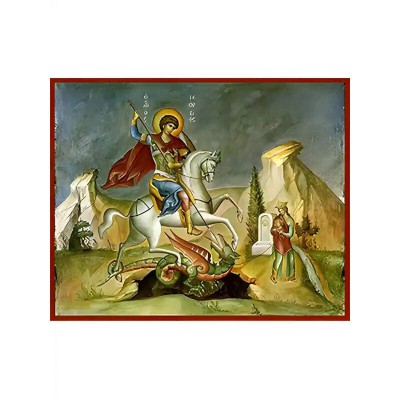 Κριτικάρετε το(τα): Εικόνα Ορθοδοξίας με περίγραμμα χρυσό σε ξύλο Φλαμουρίας με βάση Εικόνα ΑΓΙΟΣ ΓΕΩΡΓΙΟΣ Ο ΤΡΟΠΑΙΟΦΟΡΟΣ, ΕΦΙΠΠΟΣ Χειροποίητη Ελληνορθόδοξη εικόνα του Ιησού Χριστού, Κρεμαστή πλάκα βυζαντινής τέχνης, χριστιανική τέχνη Διάσταση 40x30 cm (10,2x7,9 ίντσες) I