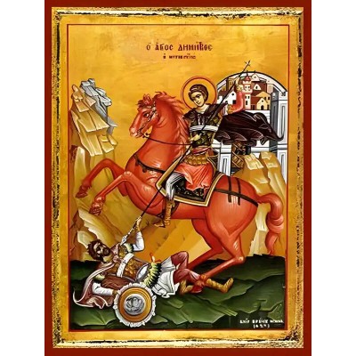 Κριτικάρετε το(τα): Εικόνα Ορθοδοξίας με περίγραμμα χρυσό σε ξύλο Φλαμουρίας με βάση Εικόνα ΑΓΙΟΣ ΔΗΜΗΤΡΙΟΣ, Ο ΜΥΡΟΒΛΥΤΗΣ, ΕΦΙΠΠΟΣ Χειροποίητη Ελληνορθόδοξη εικόνα του Ιησού Χριστού, Κρεμαστή πλάκα βυζαντινής τέχνης, χριστιανική τέχνη Διάσταση 40x30 cm (10,2x7,9 ίντσες) I