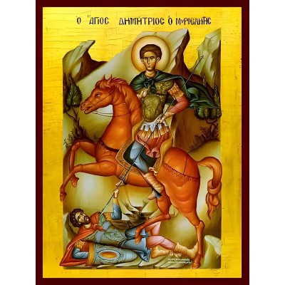Κριτικάρετε το(τα): Εικόνα Ορθοδοξίας με περίγραμμα χρυσό σε ξύλο Φλαμουρίας με βάση Εικόνα ΑΓΙΟΣ ΔΗΜΗΤΡΙΟΣ Ο ΜΥΡΟΒΛΥΤΗΣ, ΕΦΙΠΠΟΣ Χειροποίητη Ελληνορθόδοξη εικόνα του Ιησού Χριστού, Κρεμαστή πλάκα βυζαντινής τέχνης, χριστιανική τέχνη Διάσταση 40x30 cm (10,2x7,9 ίντσες) IN