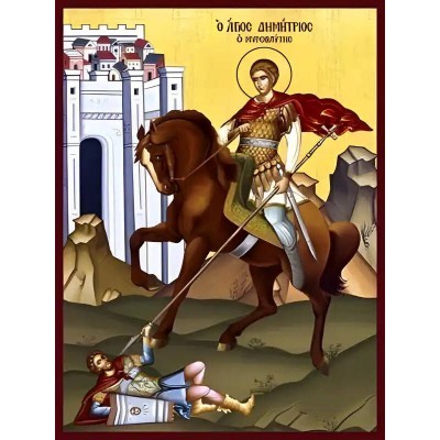 Κριτικάρετε το(τα): Εικόνα Ορθοδοξίας με περίγραμμα χρυσό σε ξύλο Φλαμουρίας με βάση Εικόνα ΑΓΙΟΣ ΔΗΜΗΤΡΙΟΣ Ο ΜΥΡΟΒΛΥΤΗΣ, ΕΦΙΠΠΟΣ Χειροποίητη Ελληνορθόδοξη εικόνα του Ιησού Χριστού, Κρεμαστή πλάκα βυζαντινής τέχνης, χριστιανική τέχνη Διάσταση 40x30 cm (10,2x7,9 ίντσες) IN