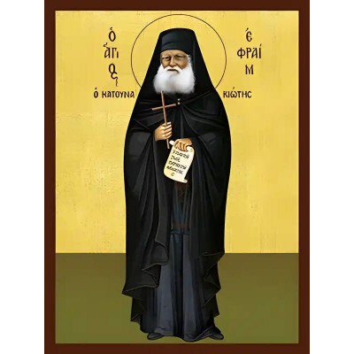 Όνομα Προϊόντος Εικόνα Ορθοδοξίας με περίγραμμα χρυσό σε ξύλο Φλαμουρίας με βάση Εικόνα ΑΓΙΟΣ ΕΦΡΑΙΜ, ΚΑΤΟΥΝΑΚΙΩΤΗΣ, ΟΛΟΣΩΜΟΣ Χειροποίητη Ελληνορθόδοξη εικόνα του Ιησού Χριστού, Κρεμαστή πλάκα βυζαντινής τέχνης, χριστιανική τέχνη Διάσταση 40x30 cm (10,2x7,9 ίντσες) IN